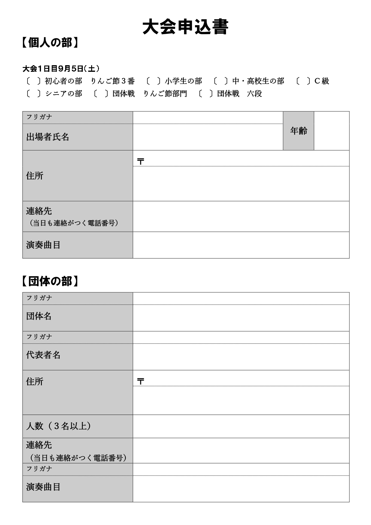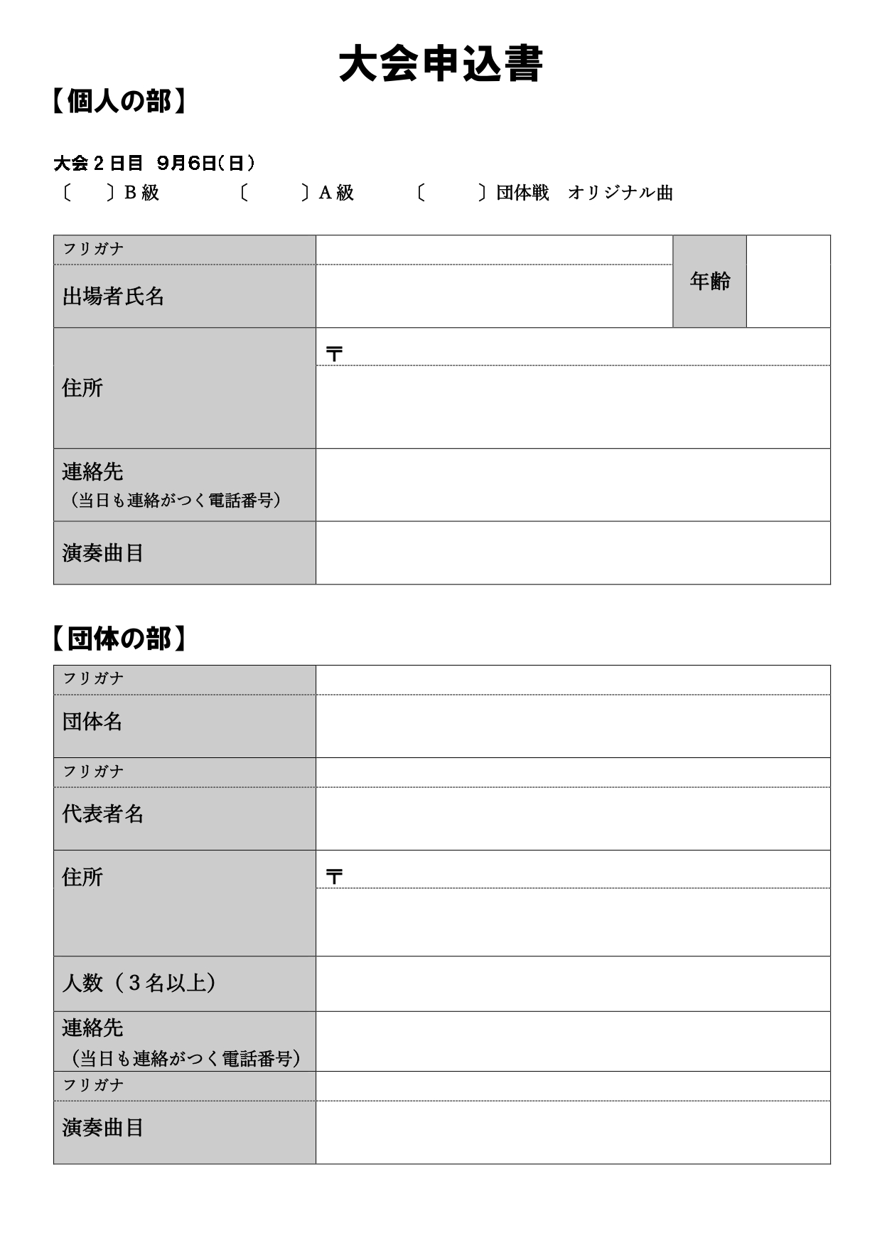 第二回津軽三味線全国コンテスト黒石大会 大会募集要綱及び大会申込書